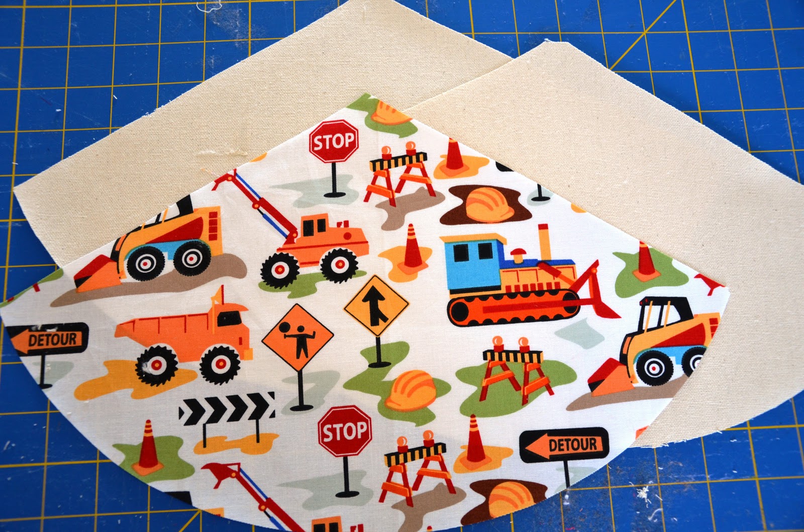 Note: when you open the cut pieces of fabric, they will now be triangles with 9" straight sides, an 18" curved bottom, and a 120 degree angle at the top.